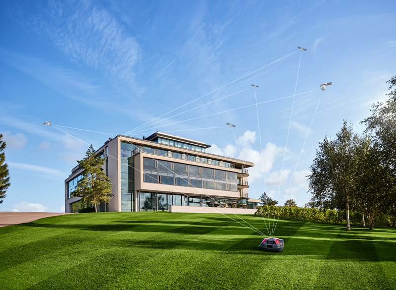 Referenční anténa přijímá satelitní signály a odesílá korekční data do sekačky, aby bylo dosaženo umístění s přesností na cm. Data jsou přenášena z referenční antény do sekačky prostřednictvím signálu LoRa (Long Range).