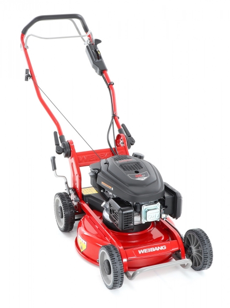 Sekačka WEIBANG WB 466 SCM je určena na středně velké travnaté plochy. Sekačka je především určena pro domácí i profesionální mulčování s pojezdem. Sekačka WEIBANG WB 466 SCM vyniká speciálně tvarovaným pevným a masivním ocelovým šasim a je také vybavena variabilním pojezd daným otáčkama motoru. Výhoda silného motoru o výkonu 6 HP a speciálnlně tvarovaného silného mulčovacího nože Vám perfektně poseká nízkou i středně vysokou trávu. Pogumovaná sendvičová kola jsou uložena v oboustranných kuličkových ložiscích, centrální nastavení výšky sečení je u této značky samozřejmostí. Velkým nadstandardem u této sekačky je použita speciální PROFI ochrana hřídele motoru, která je schopna zabránit poškození celého motoru. Tato funkce může eliminovat škody na sekačce způsobené nárazem nože do překážky. Dále je tato sekačka vybavena pevnými zadními koly a sklopnou rukojetí pro snadné uskladnění a přepravu. Dalším velkým unikátem je motor, který patří mezi silné motory, co WEIBANG v této třídě nabízí. Jedná se o silný motor rozvodu OHV o výkonu 6 HP a vysokým kroutícím momentem 9,5 Nm - 166 ccm. Další profesionální prvek, kterým sekačka disponuje je masivní kovová převodovka s garantovanou dlouhou životností. Novinkou sekačky je funkce tzv. "CHYTRÉ ŘEŠENÍ", sekačku lze pro ekonomické uskladnění, snadné čištění, servisování otočit a postavit na zadní speciální patky šasí, tímto se snadno dostanete na spodní část žacího ústrojí, uložení náprav a převodovku. Ergonomicky upravená madla se dají variabilně nastavit do jakékoli výšky za pomocí profesionálních masivních celokovových rychloupínáků. Speciální metalický komaxitový nástřik SMOOTH HARDNESS (3 vrstvy nástřiku), který výrazně umocňuje luxusní vzhled a eleganci.