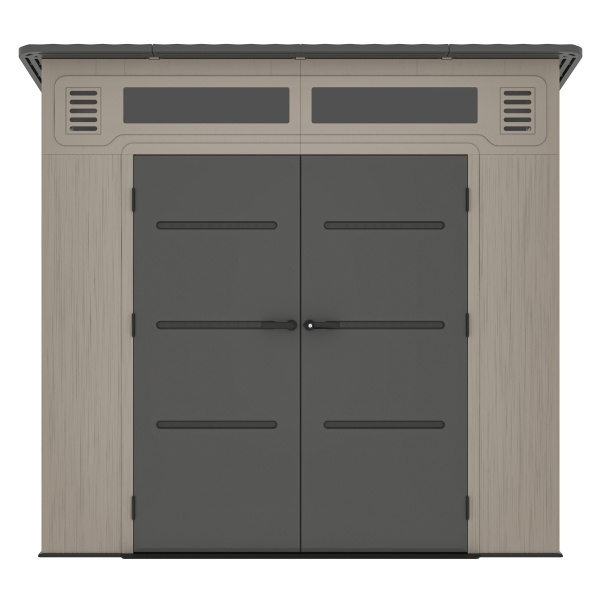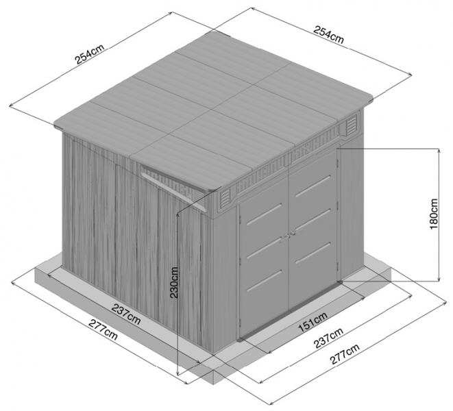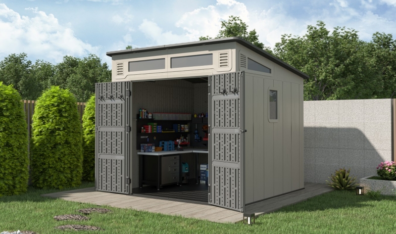 Součástí domku je pevná plastová podlaha, která chrání interiér před vlhkostí, vodou a blátem a umožňuje bezpečné uložení i těžších strojů a nářadí. O zdravé vnitřní klima se stará ventilační systém na dvou stranách – větrací otvory jsou navíc vybaveny sítí proti hmyzu, která zajišťuje účinné větrání bez nežádoucích návštěvníků.